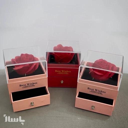 جعبه جواهرات باکس گل دار کشویی صورتی وارداتی با رز جاودان