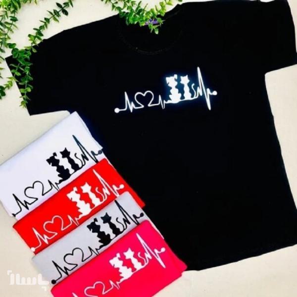 تیشرت نخ پنبه طرح گربه عاشق مناسب خانم ها تا سایز 44 (فری سایز)