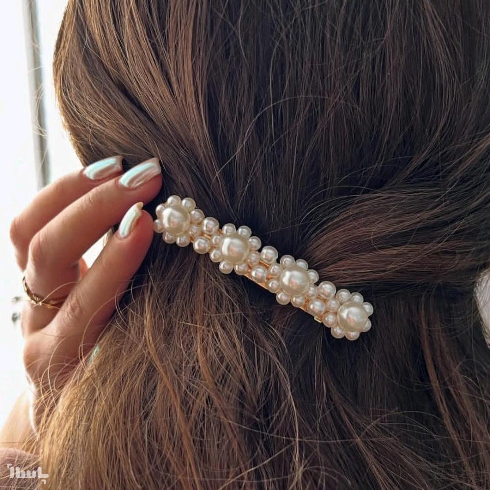 گیره مو کلیپسی طلایی مرواریدی ، بسیار زیبا ، فنر کلیپس با کیفیت و محکم