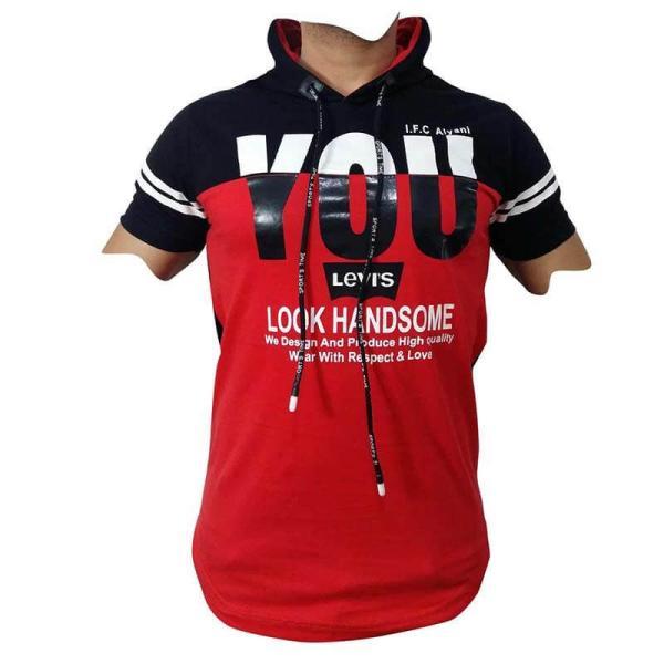 تی شرت مردانه کلاه دار چاپ YOU تولید شده از بهترین پارچه سوپر پنبه و چاپ با کیفیت .