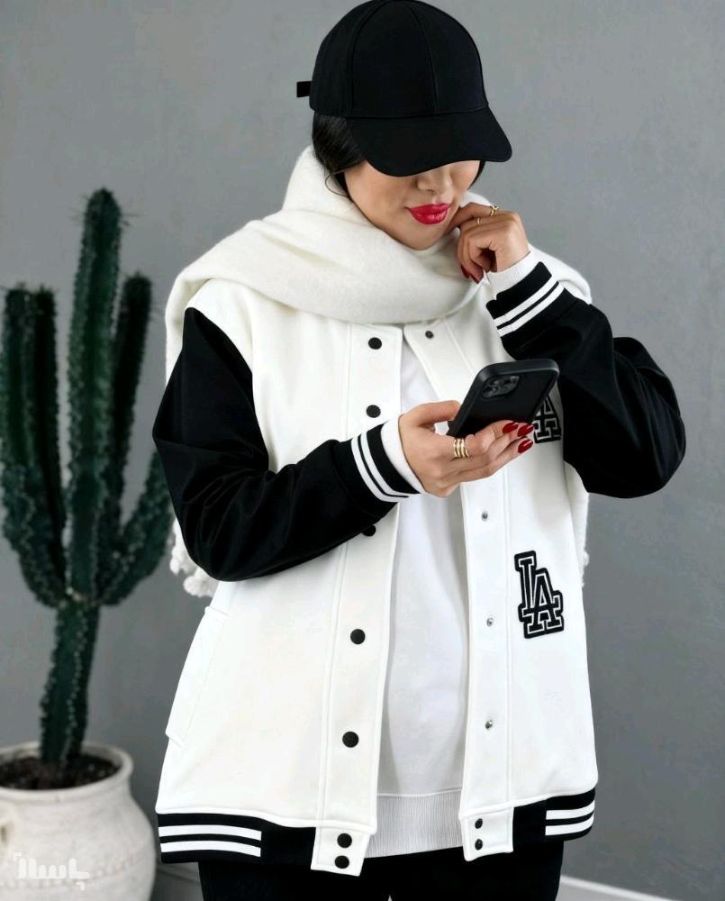 سوییشرت دورس تو کرکی بیسبالی سفید (قبل از ثبت سفارش موجودی بگیرید)