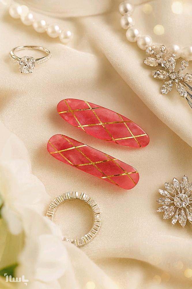 گیره رزینی صورتی طلایی