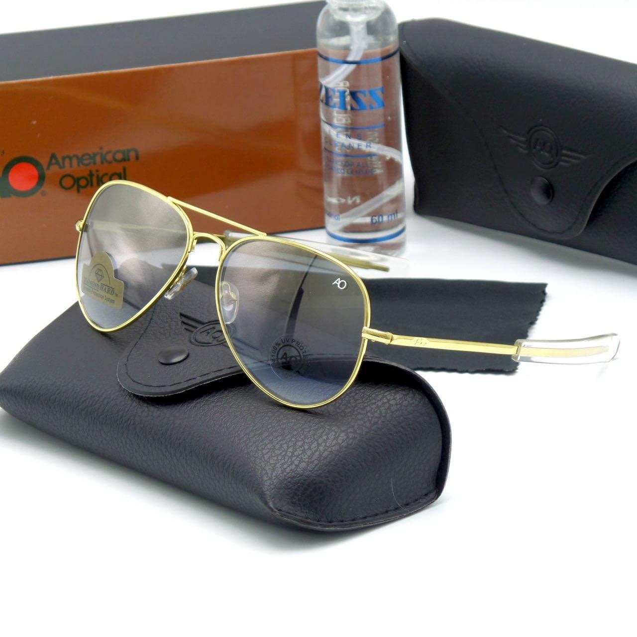 عینک آفتابی مردانه خلبانی آمریکن اپتیکال AO شیشه سنگ UV400