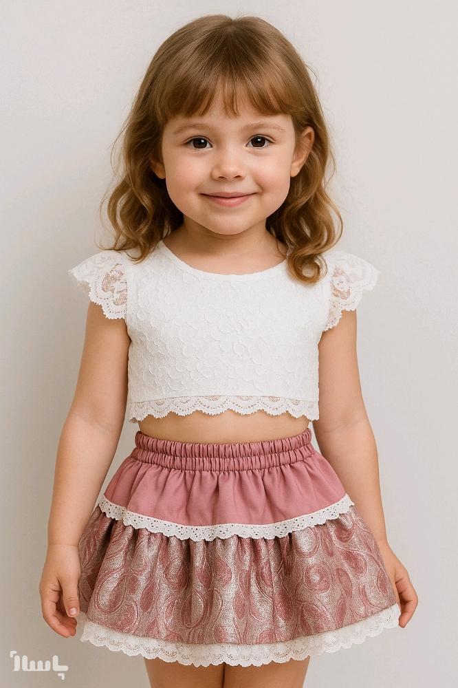 دامن بچگانه دامن دخترانه ترکیبی ساتن و پارچه هندی براق