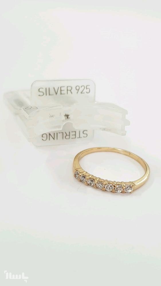 انگشتر نقره عیار 925 نگین دار با آبکاری طلا ، عیار حک شده داخل انگشتر ، شناسنامه و بارکد دار، ساخت تایلند
