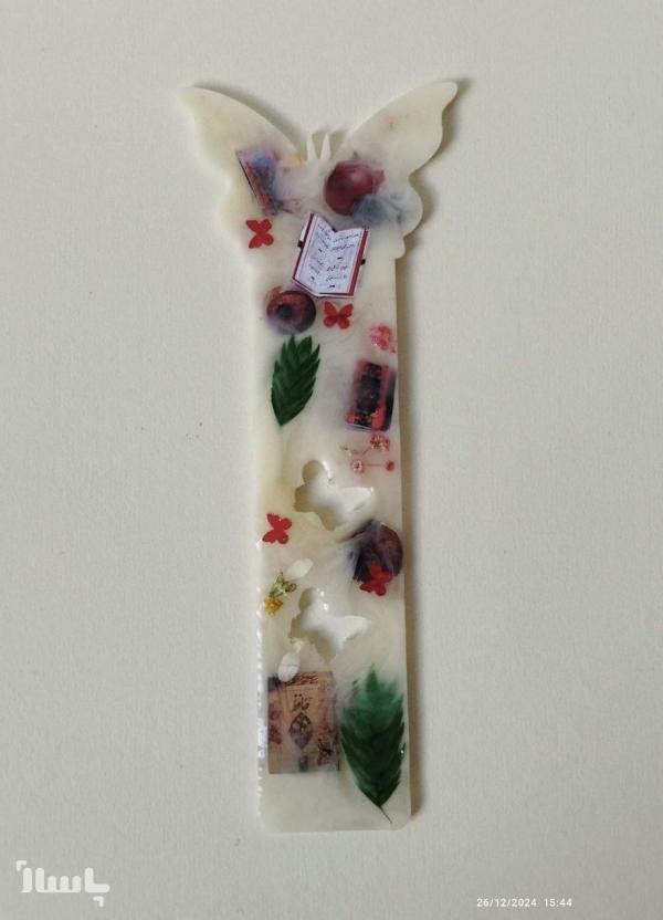 بوک مارک (نشانگر کتاب) جنس رزینی طرح کتاب های یخ زده سایز بزرگ تولید شده با قالب سلیکونی به صورت دستی سایز 15*3سانتی متر طرح کتاب و تصویر حافظ به وزن 30گرم