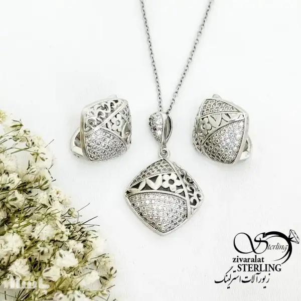 نیمست مربعی طرح دار با نقره 925 عیار کد 19636