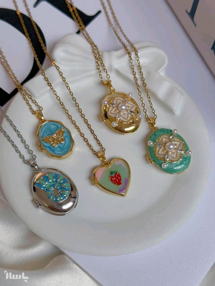 گردنبندلاکتی/زنجیر استیل/پلاک ابکاری/ضدحساسیت/کیفیت بالا/نگین مخراج کاری شده/هرگونه بدلیجات از موادشوینده عطر ادکلن استخر عرق اسیدی دور باشند