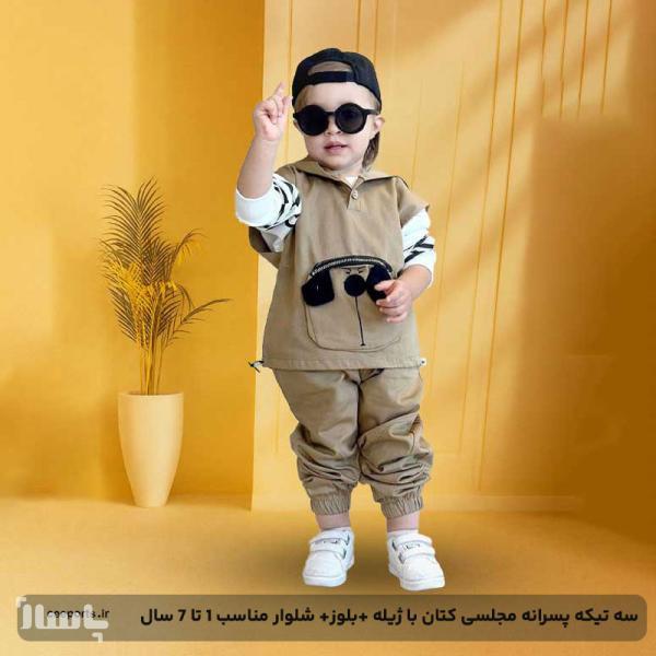 سه تیکه پسرانه مجلسی کتان با ژیله +بلوز+ شلوار
