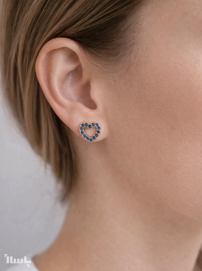 گوشواره قلبی روکش نقره نگین آبی برند I am