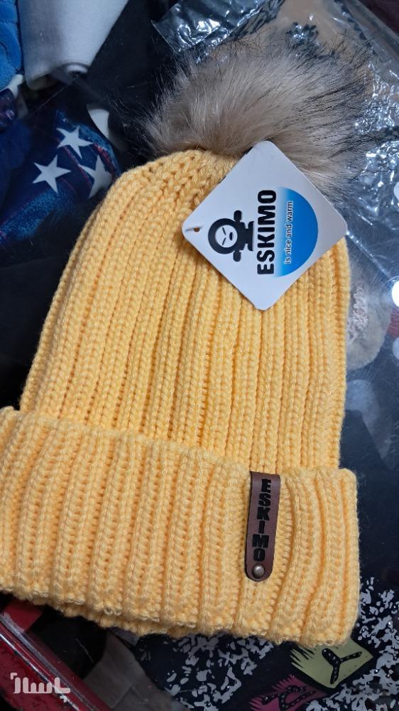 کلاه بافت تک پوم رنگ زرد مناسب3-7سال