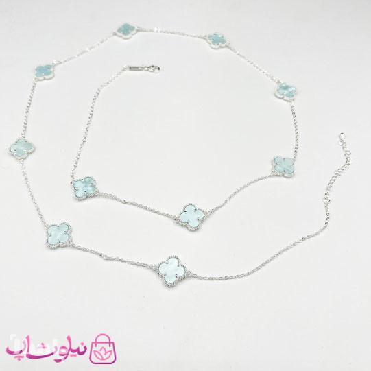 گردنبند رولباسی زنانه ونکلیف آبی آسمانی آبکاری نقره کیفیت مستر کد 470