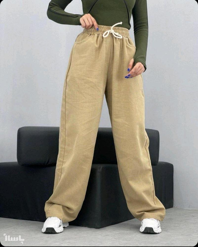 شلوار بگ کتان جنس کتان کش درجه یک و بی نظیر تنخور فوق العاده زیبا کیفیت و دوخت تضمینی قد 100