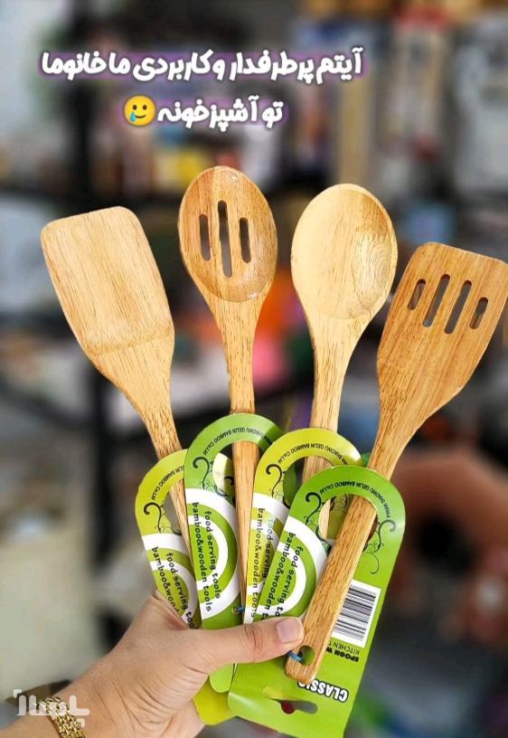 قاشق چوبی یا ابزار چوبی بامبو