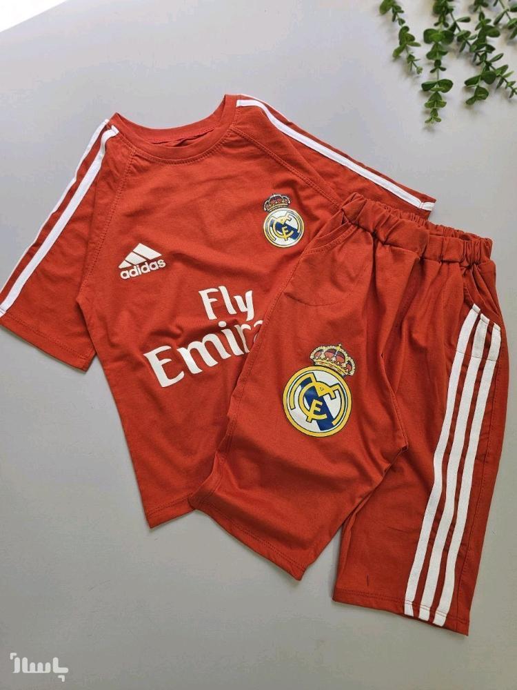 تیشرت شلوارک بچگانه طرح رئال مادرید مناسب 7 تا 14 سال