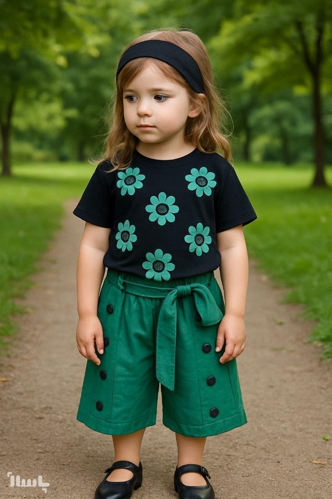ست کراپ و شلوارک دخترانه سایر 45.50.در رنگ سبز جنس کراپ پنبه حنس شلوارک مازراتی