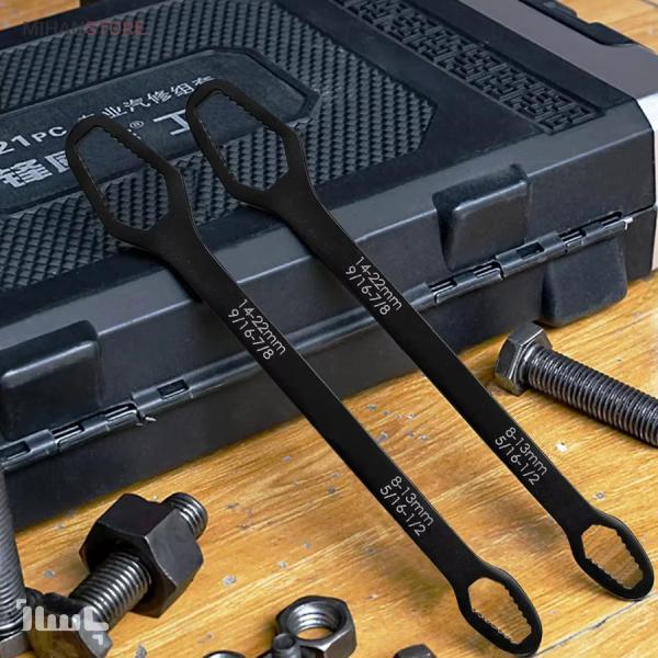 آچار دو سر رینگی همه کاره 8-22 مشکل بیشتر عاشقان ابزار و تمام فنی کاران را حل کرده است ، همیشه همراه داشتن یک کیف ابزار کامل بسیار دشوار و سنگین هست و در بیشتر مواقع آچار ها بیشترین وزن یک کیف ابزار به خود اختصاص می دهند ، آچار همه کاره دوسر رینگی 8-22 با دارا بودن 14 سایز از مهره بهترین جایزین ست های سنگین آچار های رینگی می باشند. با خرید آچار همه کاره دوسر رینگی دیگر از ناقص شدن آچارهای خود در زمان جابجایی کیف ابزار آسوه هستید، نیازی به حمل تعداد زیاد آچار ندارید و تنها یک آچار برای شما کفایت می کند. آلیاژ آچار همه کاره دوسر رینگی 8-22 از بالاترین کیفیت فولاد ساخته شده تا در برابر رطوبت و سایش مقاومت لازمه را داشته باشد. بهترین گزینه برای داخل ماشین و کسانی که کمپ می کنند یا دوچرخه سوارانی که فضای کمی برای حمل کیف ابزار های بزگ و پر سروصدا ندارند می باشد .