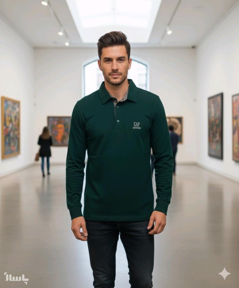 تیشرت آستین بلند مردانه یقه دار رنگ سبز
