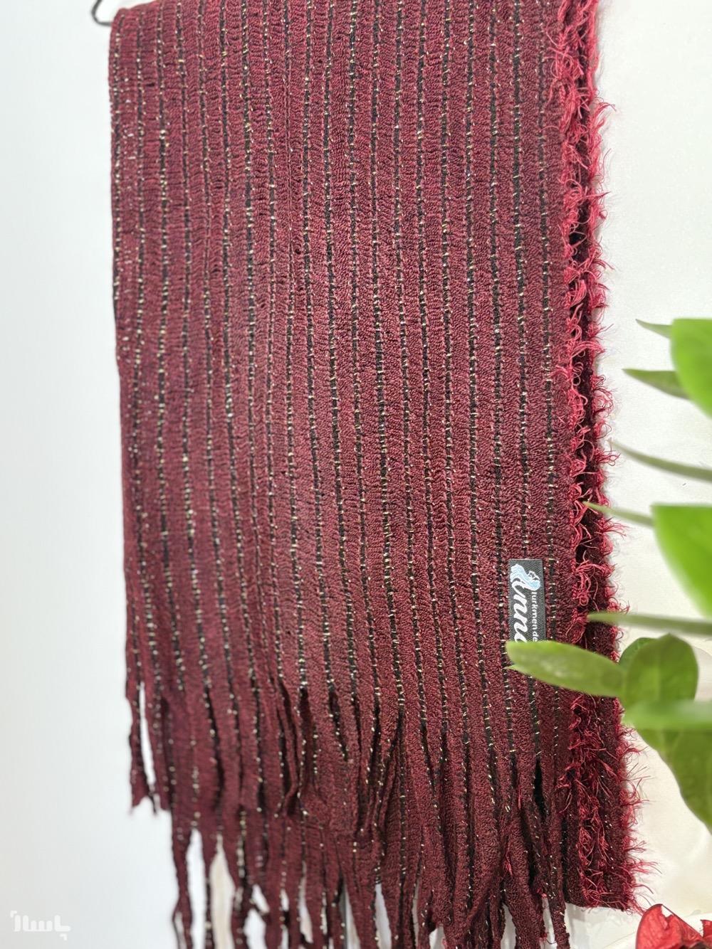 شال بافت زرشکی لمه دار