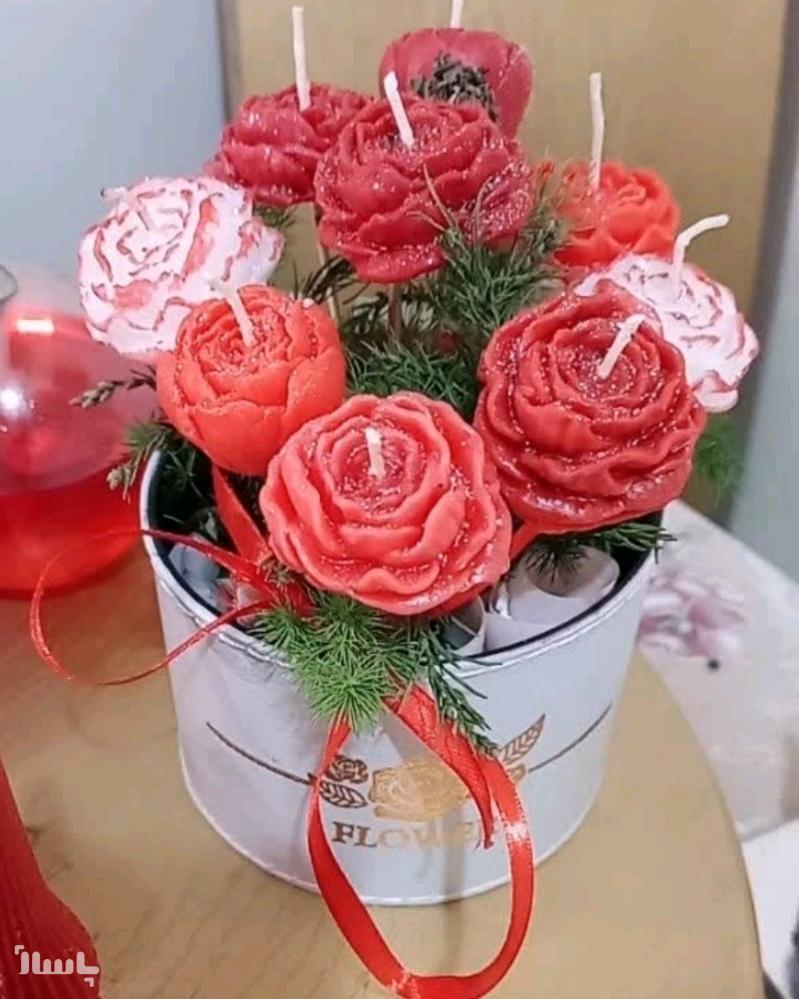 شمع دست ساز گلدان رز هدیه ای زیبا ؛ مناسب و اقتصادی