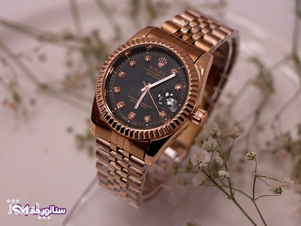 صفحه نمایش این ساعت زنانه رولکس گرد انتخاب شده و بدنه اصلی آن از رنگ رزگلد تولید می شود که زیبایی خیره کننده ای دارد. صفحه نمایش ساعت نیز از نوع تیره و مشکی رنگ انتخاب شده تا با بدنه اصلی یک تضاد زیبا را تشکیل دهد. از سوی دیگر برای نشان دادن اعداد بر روی محیط دایره صفحه نمایش این ساعت زنانه از نگین استفاده شده و شما می توانید ظرافت بالایی در طراحی این ساعت مچی زنانه رولکس مشاهده نمایید. بدنه اصلی این ساعت زنانه به همراه بند آن نیز از نوع استیل و رنگ ثابت تولید شده است.