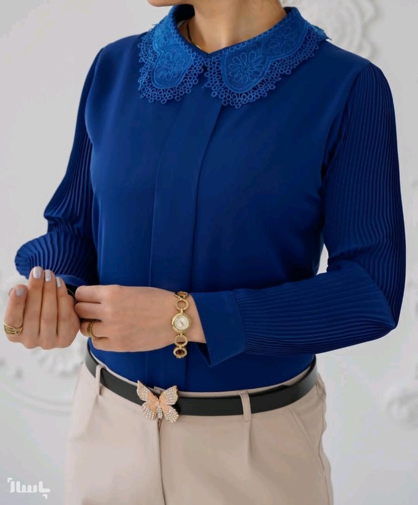 یقه گلدوزی شده آستین بلند مچی پلیسه