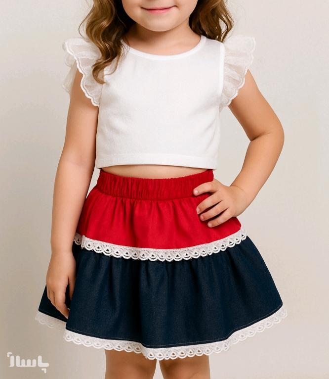 دامن بچگانه دامن دخترانه افران ترکیبی جین و ساتن