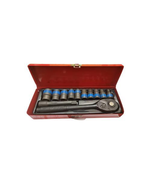 دارای دسته جغجغه ای درایو 1/2 مشکی دارای جعبه فلزی قابل حمل فلزیواسطه کوتاه 5 اینچ درایو 1/2 اینچجنس فولاد کروم وانادیومتعداد بکس : 10 عددشماره بکس : 10 -11 -12 -13 -14 -15 -17 - 19 - 21 - 24 میلیمتراحتمال اینکه خم و یا فرورفتگی در جعبه فلزی و شکستگی جزئی در فریم داخلی وجود دارد.ساخت : چین