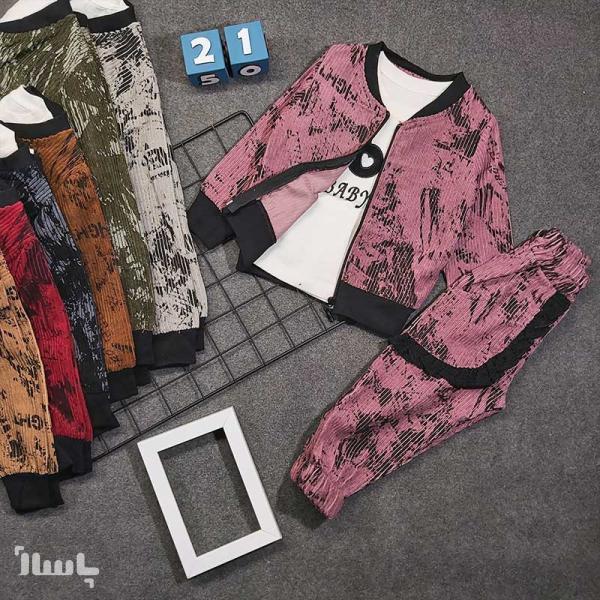 ست سه تیکه مخمل کبریتی دخترانه کد 7140
