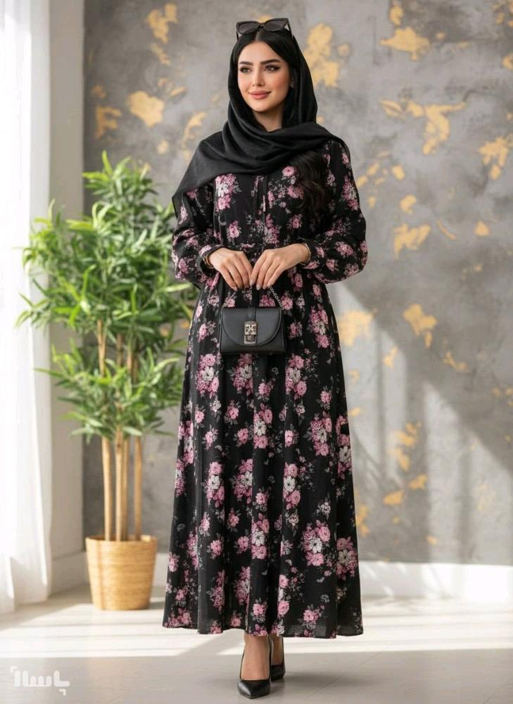 پیراهن ماکسی یقه چین گل گلی