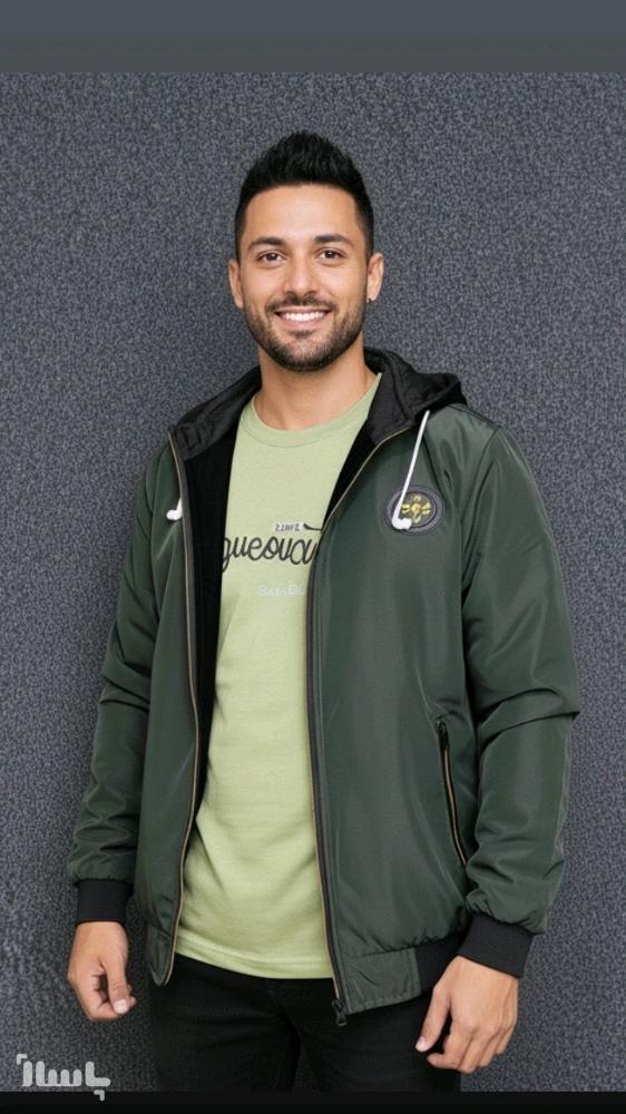 جنس یک طرف پارچه برزنتی اعلا به رنگ یشمی و جنس طرف دیگر پارچه غواصی چاپ دار به رنگ مشکی