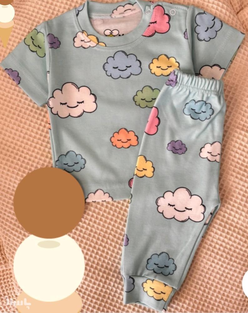 ست تیشرت شلوار نوزادی طرح ابر خوشحال