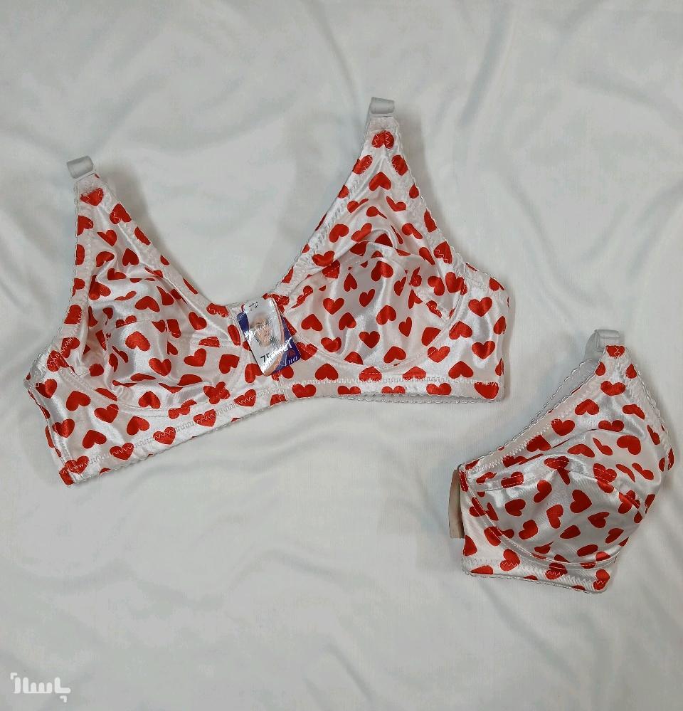 سوتین نخی ساتن طرح سفید قلبی سایز 60 70 75