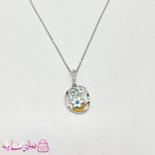 خرید گردنبند زنانه میناکاری شده طرح گل سفید