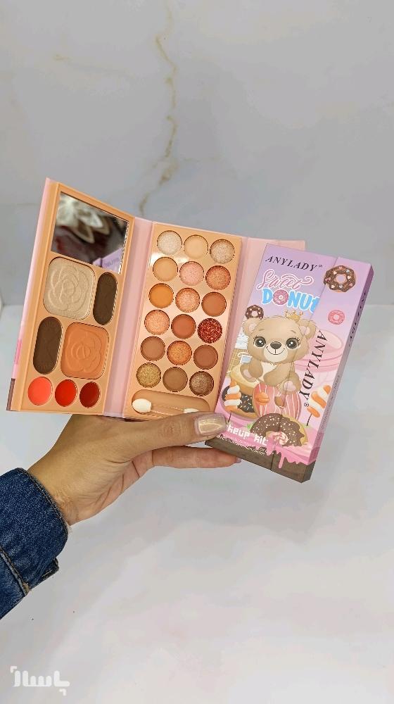 18 رنگ سایه ، یه دونه هایلایتر ، یه دونه رژگونه ، دو تا سایه ابرو یا کانتور ، سه تا رژ لب به همراه آینه و براش