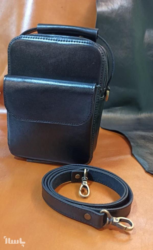 تولید شده از چرم طبیعی گاوی ، کاملا دست دوز ، در ابعاد 21در17، مناسب برای کیف پول، جا کارتی ، موبایل، پول نقد، دارای دو زیب مجزا.