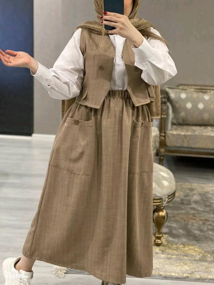 جنس : شومیز داکرون جلیقه و دامن شانتون