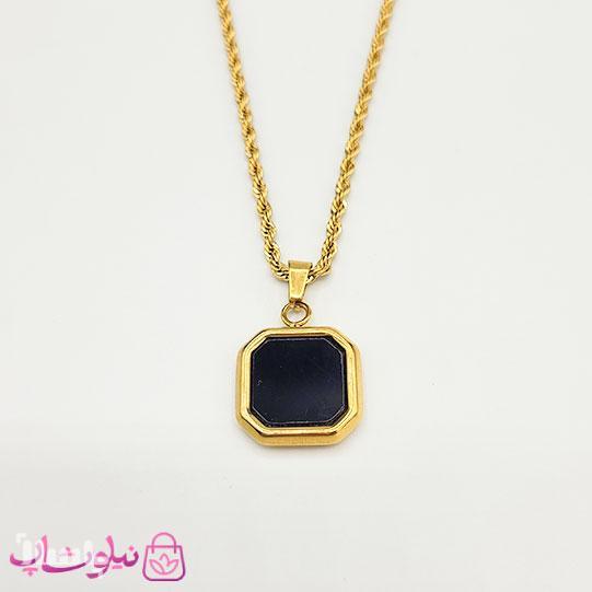 گردنبند سنگ اونیکس مشکی با زنجیر طنابی طلایی کد 300