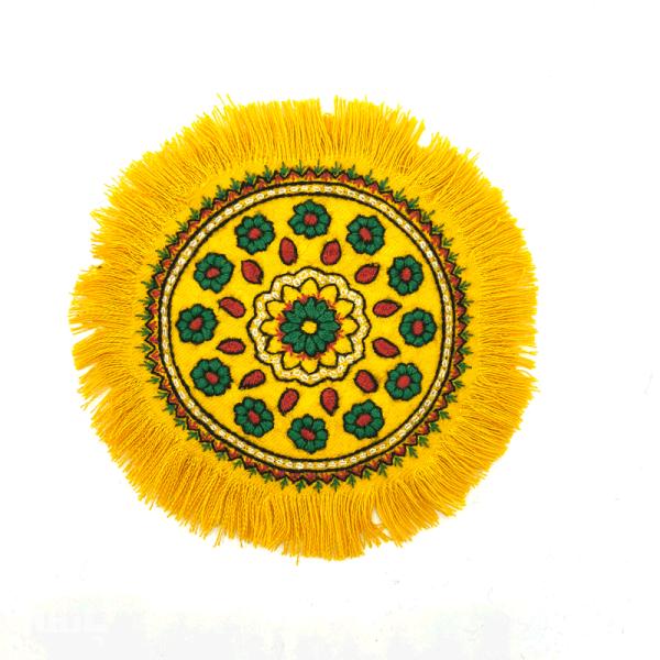 ویژگی های رومیزی پته دوزی طرح شکوفه رنگ زرد 20 سانتی