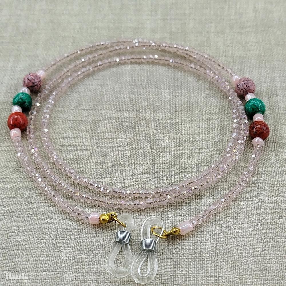بند عینک تمام کریستال تراش دار با مهره های چوبی 3
