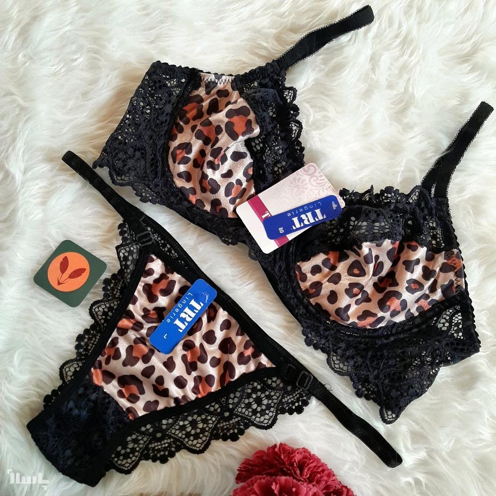 ست شورت و سوتین پلنگی،ترکیب ساتن و دانتل از برندTRT