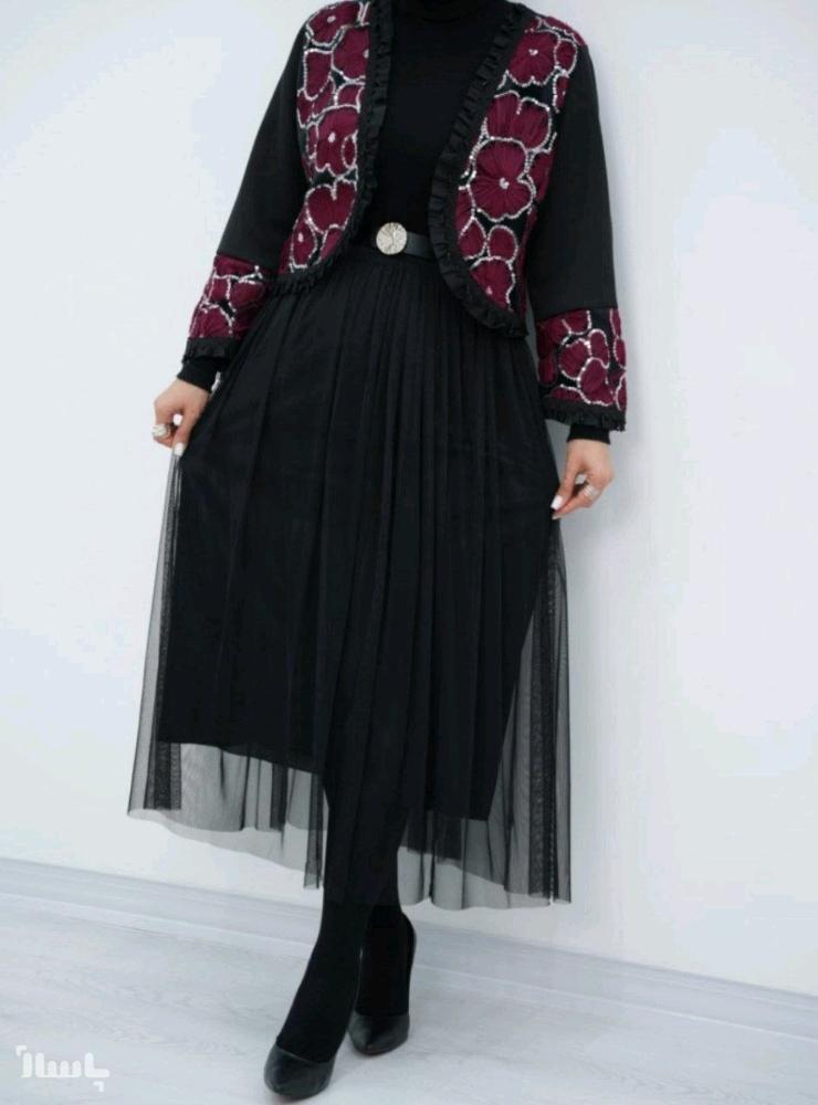 جنس : کت کرپ مازراتی با خرجکار گلدوزی شده دامن و شال تور