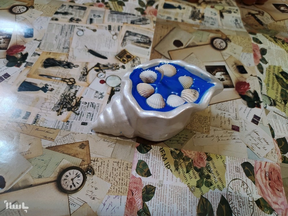 شات صدف گوش ماهی سنگ مصنوعی با پارافین ژله ای و تزیینات صدف طبیعی برای عاشقان دریا