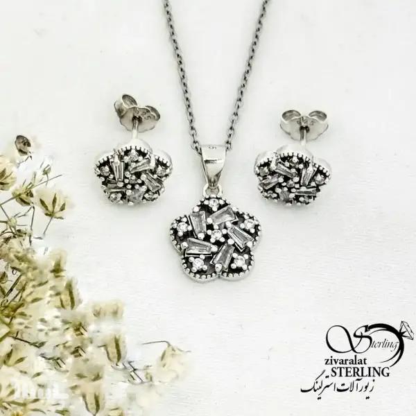 نیمست نقره ایتالیایی طرح گل جواهری کد 20276