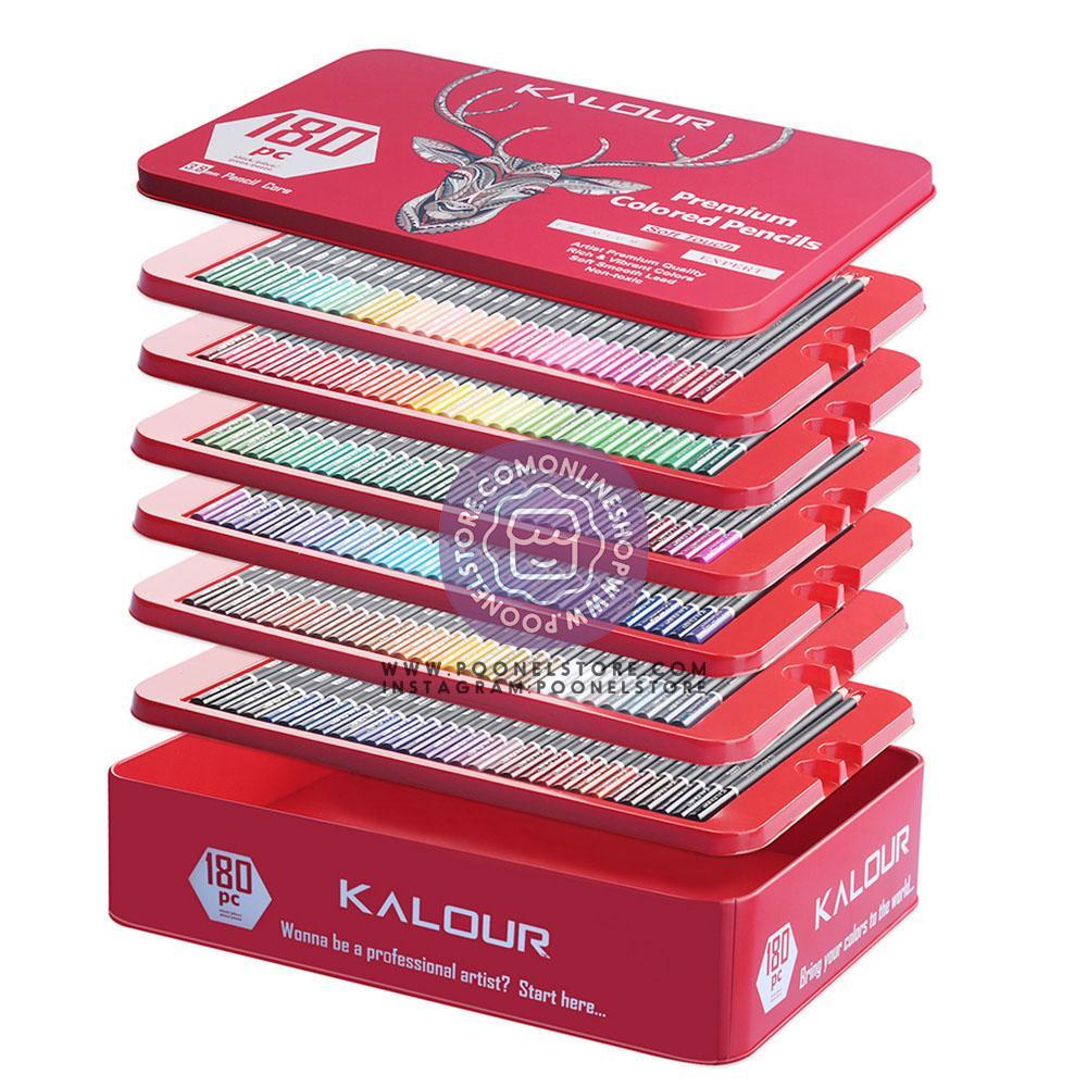 مدادرنگی پریمیوم Kalour مناسب برای بزرگسالان مجموعه 180 رنگ هسته نرم مبتنی بر موم هنرمندان شماره گذاری و نامگذاری شده ایده آل برای نقاشی رنگ آمیزی طراحی مداد هنری برای کودکان مبتدی kalour iron box 180 art color pencils code 771025 www.poonelstore.com