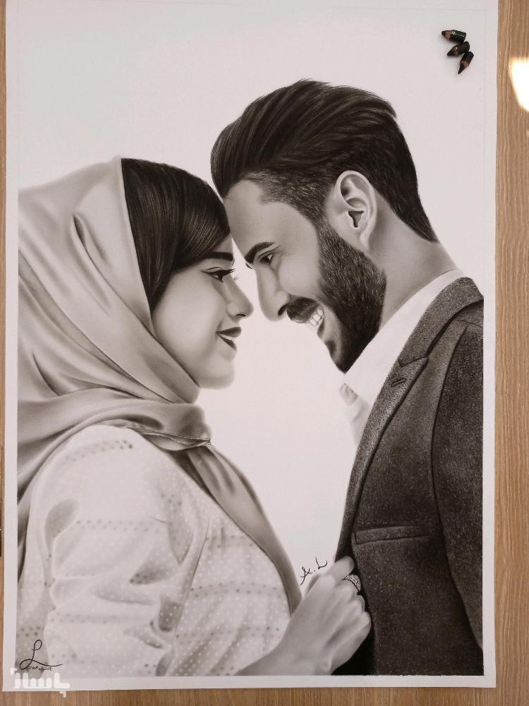 نقاشی چهره سیاه قلم دو چهره