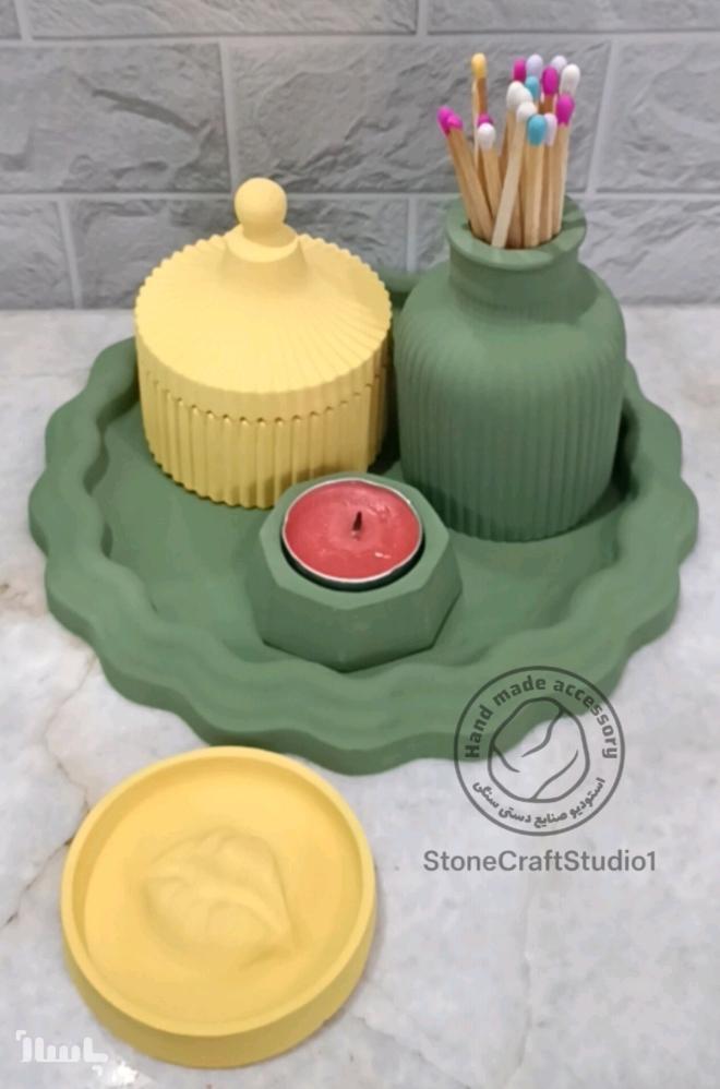 سینی سبز ملایمش (جایی بین سدری و سیج) آرامش و طبیعت رو میاره وسط خونهتون، و زرد لیمویی شادش تو قندان و جاعودی، مثل یه تکه آفتاب میدرخشه. وقتی نور بهش میخوره، نگاهت ناخودآگاه چند ثانیه بیشتر روش میمونه.