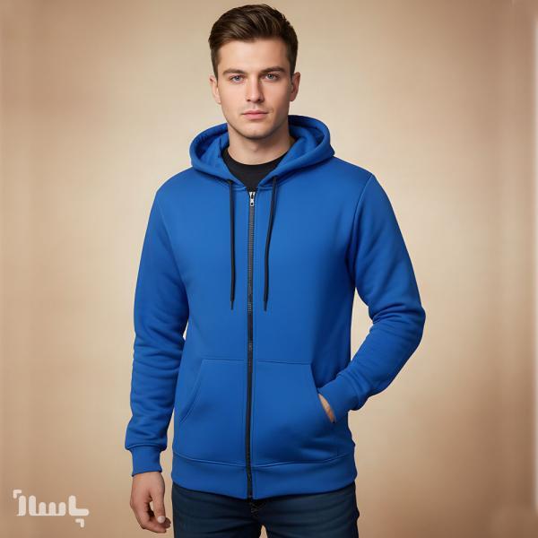 سویشرت دورس کلاهدار زیپی سهنخ پنبه داخل کرک رنگ آبی کاربنی– گرم، راحت و باکیفیت