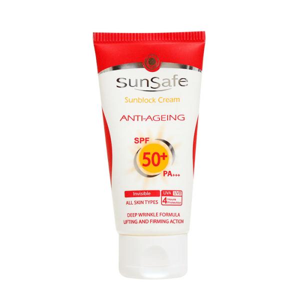 کرم ضد آفتاب و ضد چروک بی رنگ spf50 سان سیف