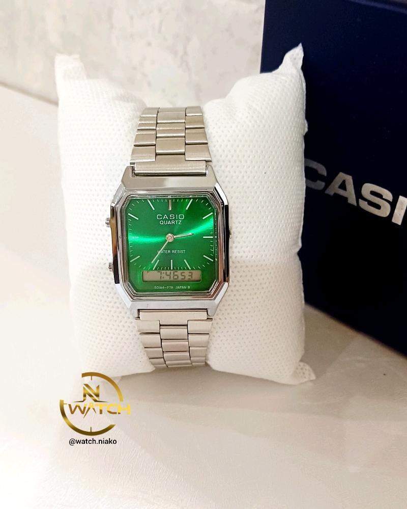 ساعت مچی کاسیو CASIO دوزمانه هایکپی مدل AQ-230 JAPAN استیل صفحه سبز